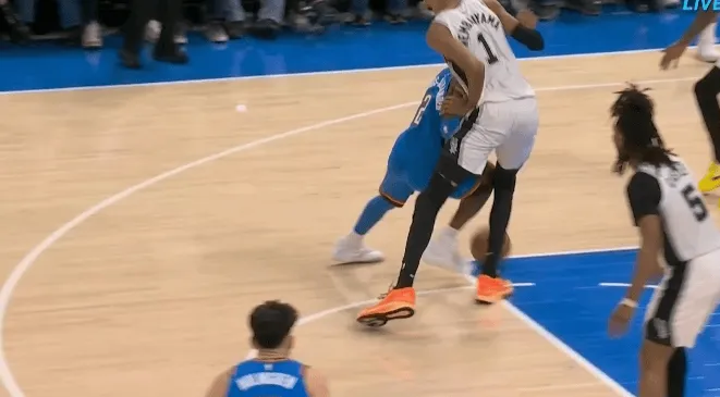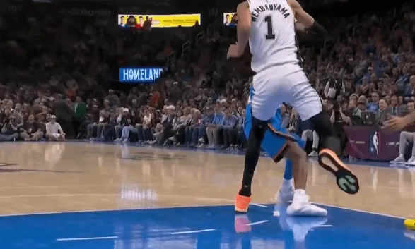 第三节比赛中,亚历山大突破撞到文班亚马膝盖,后者腿部不适被换下场。